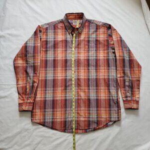 Cinch Men's Red Orange Plaid Long Sleeve Button Down Front Shirt Size Medium