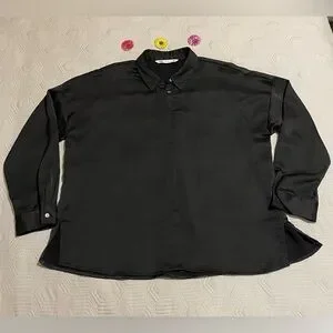 Classic black women’s satin shirt, perfect for any occasion. Stylish and versatile.