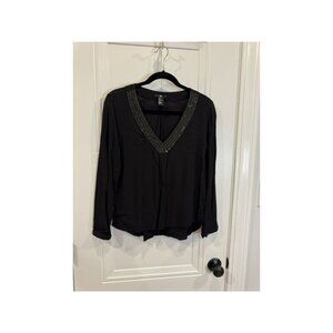H&M Black Embellished V-Neck Blouse Size 10 EUC