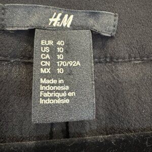 Elegant and striking, this H&M black blouse (US size 10) features a flattering v-neckline adorned with eye-catching black rhinestones. The relaxed fit, long sleeves, and lightweight fabric make it perfect for evenings out, parties, or elevating your workwear wardrobe. Excellent condition. Pairs beautifully with tailored pants or a skirt for sophisticated style. Approximate measurements: 18 in. armpit to armpit; 24 in. length. Please ask all questions prior to purchase.