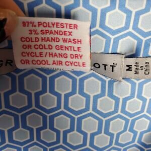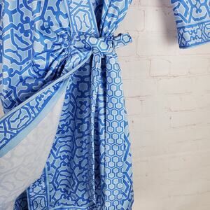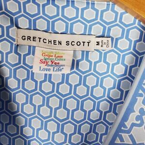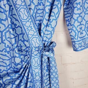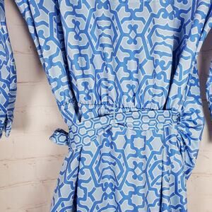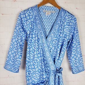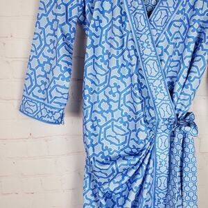Gretchen Scott Wrap Me Up Dress 3/4 Sleeve Stretch Size M Blue Jersey Geo Print