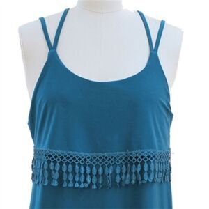 Jon & Anna Womens Small Teal Strappy Sleeve Fringe Tassels A-Line Maxi Dress