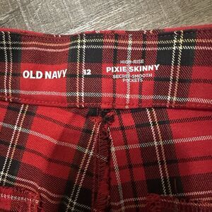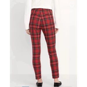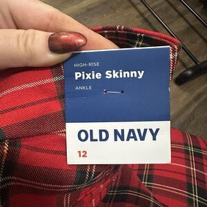 Old Navy Pixie Skinny Ankle Dress Pants Womens 12 Red Plaid Stretch NEW Tartan