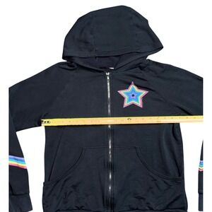 Lauren Moshi Black Rainbow Star Zip Hoodie Sweatshirt M