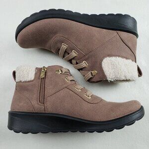 Bzees Generation Ankle Bootie Womens 9 Tan Side Zip Cozy Faux Fur Lined Comfort