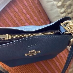 Coach mini town bucket bag, crossbody bag genuine leather slate blue - gray colored with gold hardware stamped with Coach logo