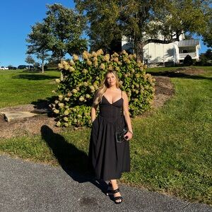 Worn only once.Step out in style with this elegant black midi dress, perfect for any occasion. Its timeless design and flattering fit make it a must-have in your wardrobe.OPEN TO OFFERS