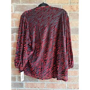 Calessa Red Zebra Striped Velvet Sheer Blouse Size 1X