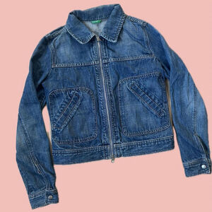 Keywords: vintage denim jacket, Benetton jacket, Italian denim, utility jacket, zip-up jean jacket, boxy denim, y2k outerwear, minimalist