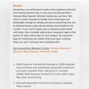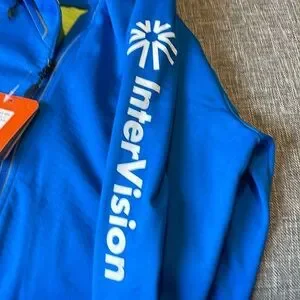New with tag elevate size medium shield tech zip up jacket two front pockets super cozy does have a brand-name of inter-vision on one sleeve otherwise solid blue with reflector Gray lining and yellow inside