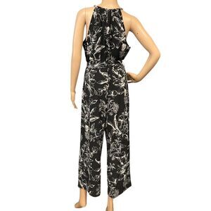 WHITE HOUSE BLACK MARKET Black & White Floral Jumpsuit Belted Sz 12