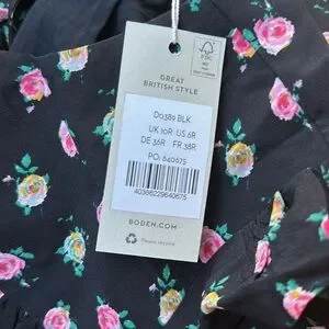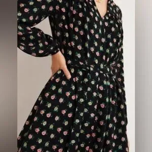 NWT Boden Gathered Yoke midi dress in black roses floral spring belted viscose