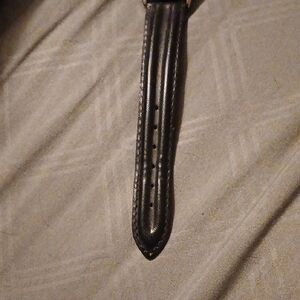 Armitron watch featuring a playful cartoon dial. Black leather strap. Silver-tone case.