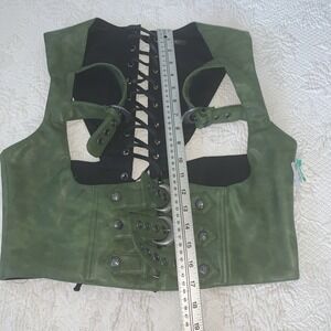 The Dolls Kill Widow Tea Leaf Party Underbust Corset in XXL size is a stylish and trendy piece made of faux leather, perfect for women looking to add a touch of green and leafy style to their wardrobe. This medium support corset from Dolls Kill is designed to flatter and provide a comfortable fit, making it ideal for various occasions. With its unique theme and high-quality materials, this corset is sure to stand out and make a statement in any fashion ensemble.