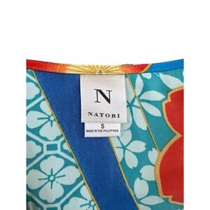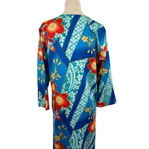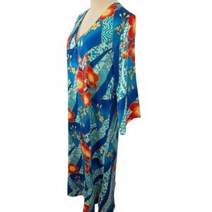 Natori Blue Mikoto Zip Front Kaftan Nightgown Dress Sz S Floral Kimono Style