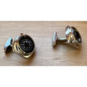 Tateossian London Silver Tone Compass Thermometer Cuff Links Gift Nautical Dad