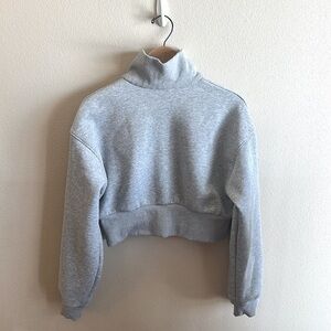 Emory Park Quarter Zip Sweatshirt Size Large Light Gray Mock Neck Cropped