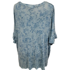 Lularoe Super Soft Blue Top With Ruffled Sleeves Size XL