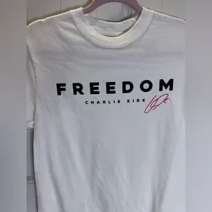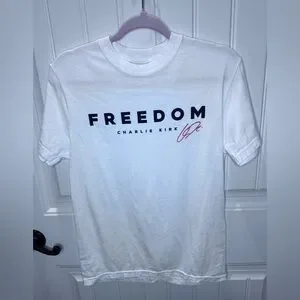 Soft and stylish short sleeve tee. Features bold 'Freedom' print. Ideal for everyday wear.