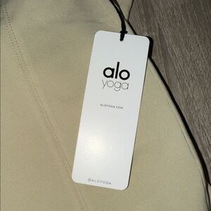 Chic light beige flared/split leggings by ALO Yoga. Ideal for yoga or everyday comfort.