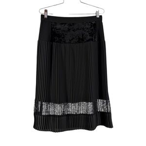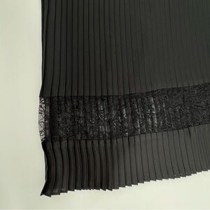 Donna Karan BlackLabel Black Pleated Midi Skirt with Lace and Velvet Detail