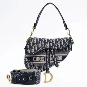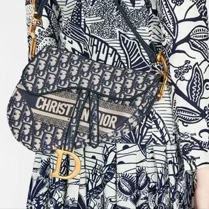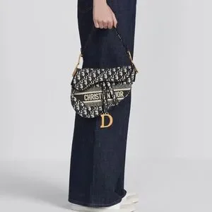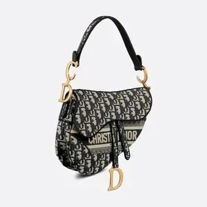 Maria Grazia Chiuri brings a fresh update to the iconic Saddle bag. The design is fully embroidered with the House's hallmark blue Dior Oblique motif. The legendary style features a Saddle flap with a D stirrup strap and magnetic pull, as well as an antique gold-finish metal CD signature on either side of the top handle. The bag can be carried by hand or worn over the shoulder and may be customized with different shoulder straps.