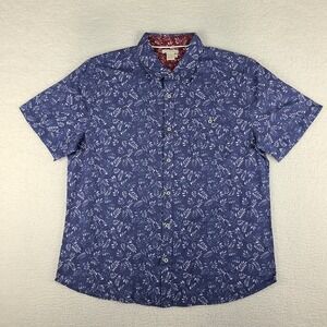Carbon 2 Cobalt Shirt Mens Large Dark Blue Floral Linen Hawaiian Button Up EC