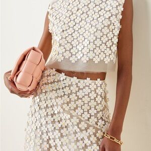 Chic mini skirt with floral embellishments. Perfect for stylish outings.