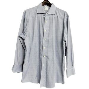 Brooks Brothers Regent Blue Herringbone Non-Iron Cotton Dress Shirt Size 16.5- 2/3