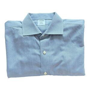 Brooks Brothers Regent Blue Herringbone Non-Iron Cotton Dress Shirt Size 16.5