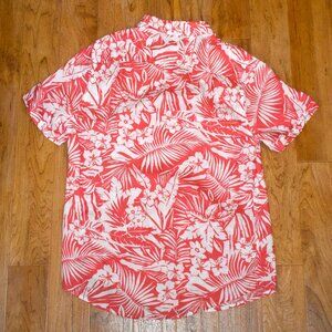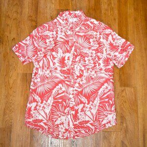 Onia Orange Short Sleeve Tropical Floral Print Linen Button Front Shirt Sz M