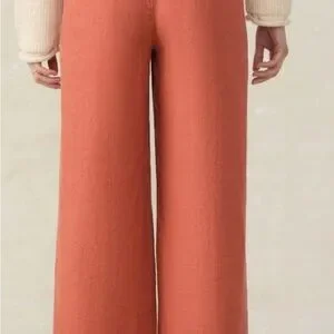 Faherty Sun Strider Linen Pants Wide Leg High Rise Womens Small Red Rock/Orange