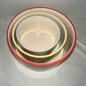 Set of 3 nesting ceramic bowls, the larger and smaller bowl come with lids
