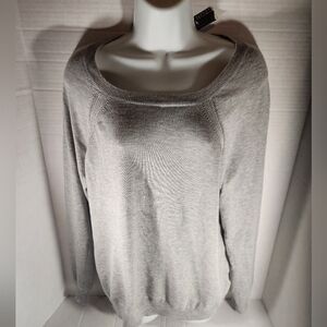 NWT Women's Covington Pointelle Light Gray Scoop Neck Sweater