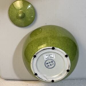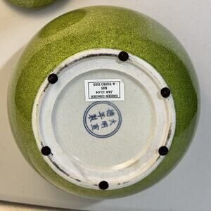This VTG Chinese Crackleware Glaze Porcelain Green Covered Ginger Jar Temple Vase is an antique original piece from China, specifically dating back to the Qing era. The monochrome glaze, primarily made of porcelain and pottery materials, gives it a unique and traditional look. The intricate design and green color make it a standout piece for collectors and enthusiasts of Asian antiques. Perfect for adding a touch of history and culture to any space, this covered ginger jar temple vase is a charming and distinctive addition to any collection.