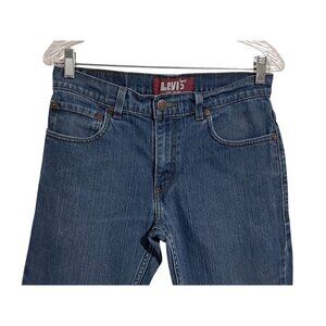 Levis 511 skinny jeans. Slim through the thigh. Sits below the hip. Made for boys but can be unisex or even smaller sized mens. One small hole starting on the knee. Overall normal wear otherwise; faing, slight fraying starting (barely). Please view photos. Zipper closure. 5 pocket design. 99% Cotton, 1% Elastane, so slight stretch.
