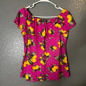 Women’s Lemon Print Off Shoulder Ruffle Peasant Top Pink Polka Dot XL