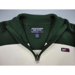 Abercrombie and Fitch Sweater Mens XL Green White Half Zip Pullover A/F 92 Logo