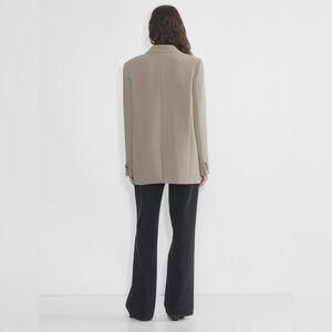 Size 00 I think colour is nomand taupe This is a single-breasted blazer with a classic fit, notched lapel and shoulder pads. It’s tailored with Crepette™ — our one-of-a-kind Japanese crepe fabric beloved for its subtle texture, breezy drape and the fact that it basically never wrinkles. Features Fully lined Buttoned cuffs Double welt pockets Back vent for ease of movement Interior pocket with button closure