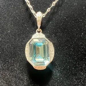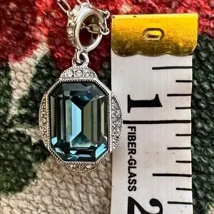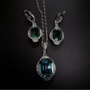 Beautiful rich blue touch stone crystal earrings and necklace set. The necklace chain is 14 inches and has a 3 inch extender.