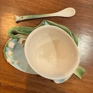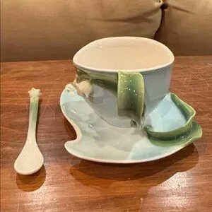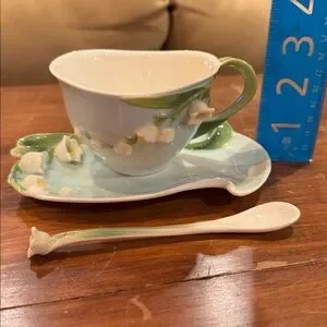 RARE!! This beautiful NEW WITHOUT TAGS teacup saucer/plate and matching spoon set is from Two’s Company. It features beautiful Lily if the Valley in beautiful 3D. It would be perfect as an addition for entertaining…it’s just so pretty! It’s BRAND NEW - no tags and it was not used - it remains in EXCELLENT CONDITION!! I am a 5-star seller, speedy shipper, and we are a pet and smoke free home. MAKE AN OFFER!! I love receiving and kindly consider all reasonable offers!