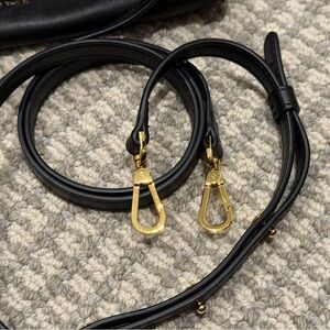 Elegant Mansur Gavriel shoulder bag. Black exterior with striking red interior. Ideal for versatile styling.
