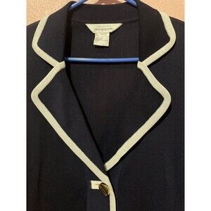 Misook Classic Knit Stretch Blazer Jacket size S Navy Gold Buttons White Trim