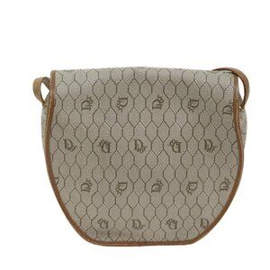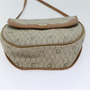 Christian Dior Honeycomb Canvas Shoulder Bag PVC Leather Beige Auth