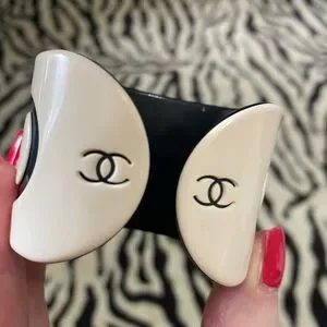 Vintage authentic Coco cuff fits extra small wrist. Resin with black lettering.