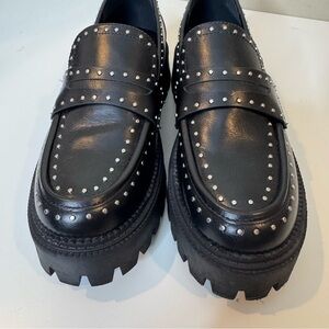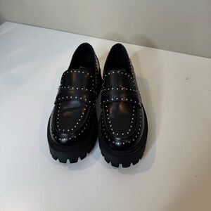 Dolce Vita Black Studded Landun Lug Sole Platform Loafers size 8.5