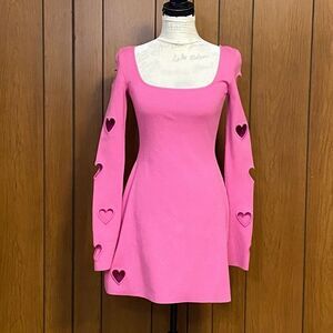 MACH & MACH's rib-knit Gaia minidress is defined by embroidered heart cut-outs at the long sleeves and front hem.