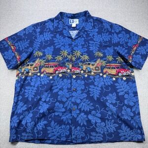 RJC Hawaiian Shirt Mens L Woodie Car Floral Print Aloha Shirt Made in Hawaii