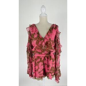 Hemant And Nandita Long Sleeve Pakhi Romper Womens Size Medium Pink New Green