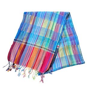 Coldwater Creek 100% Wool Multicolored Scarf With Fringe Size 70"x13"